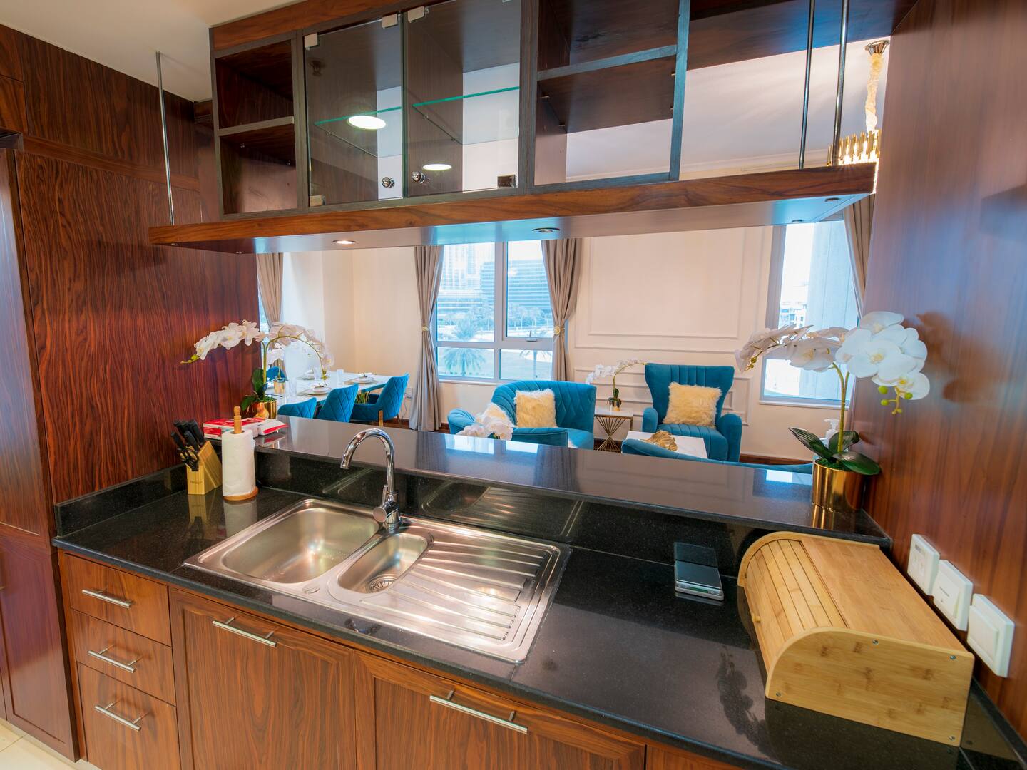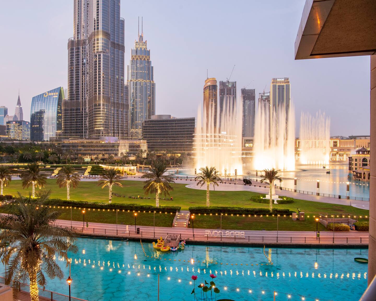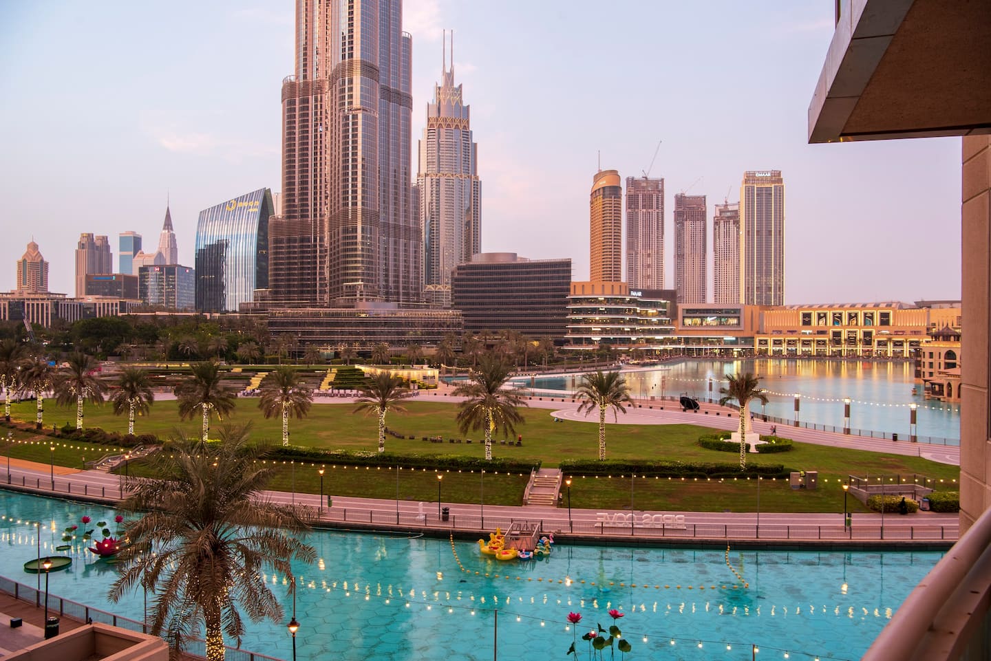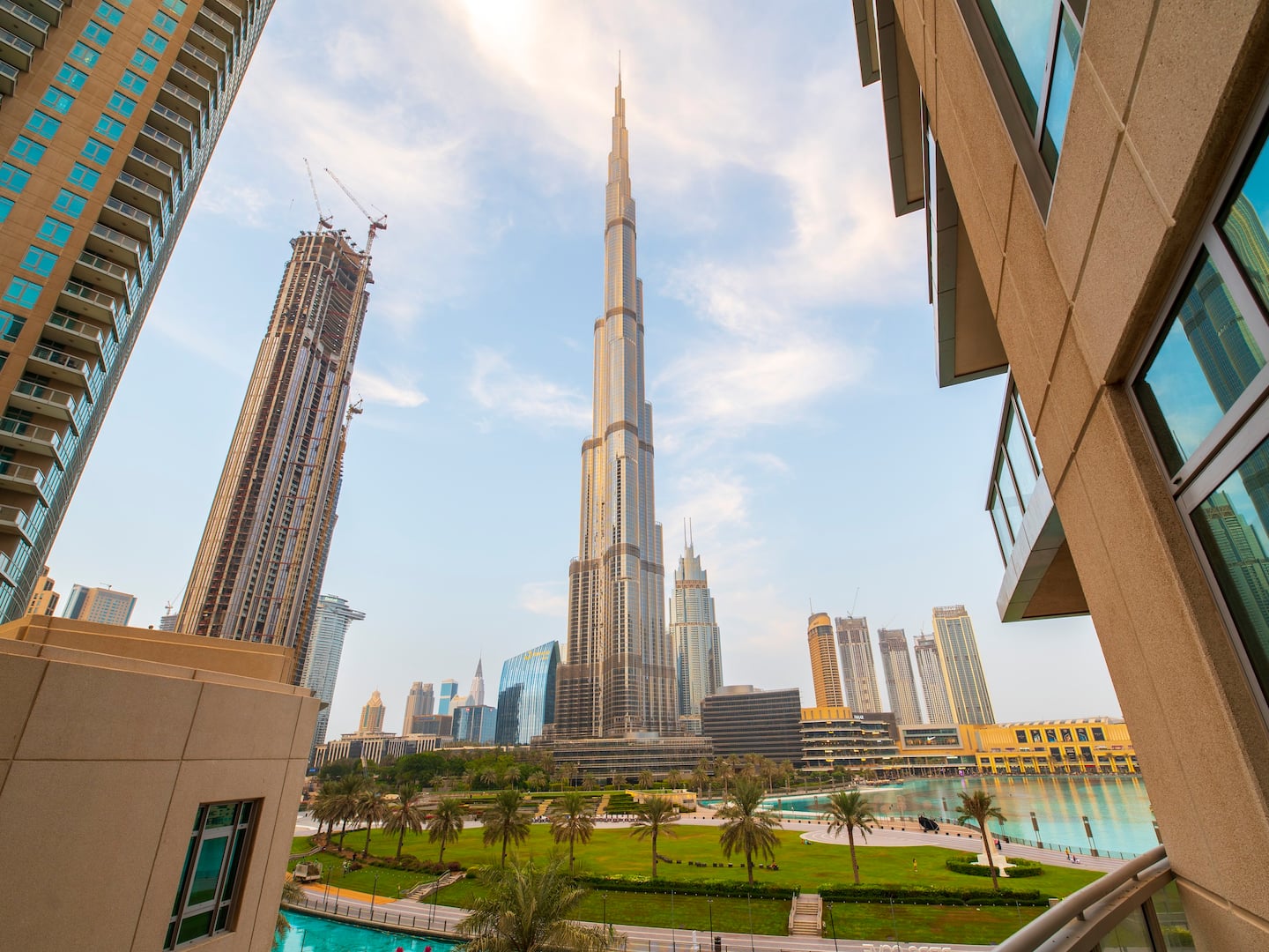 This luxuriously designed apartment has a direct full view from the balcony on the tallest building in the world Burj Khalifa and the famous dancing fountain.