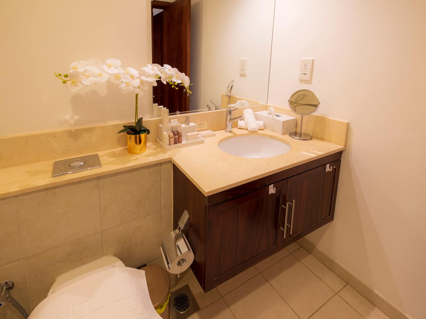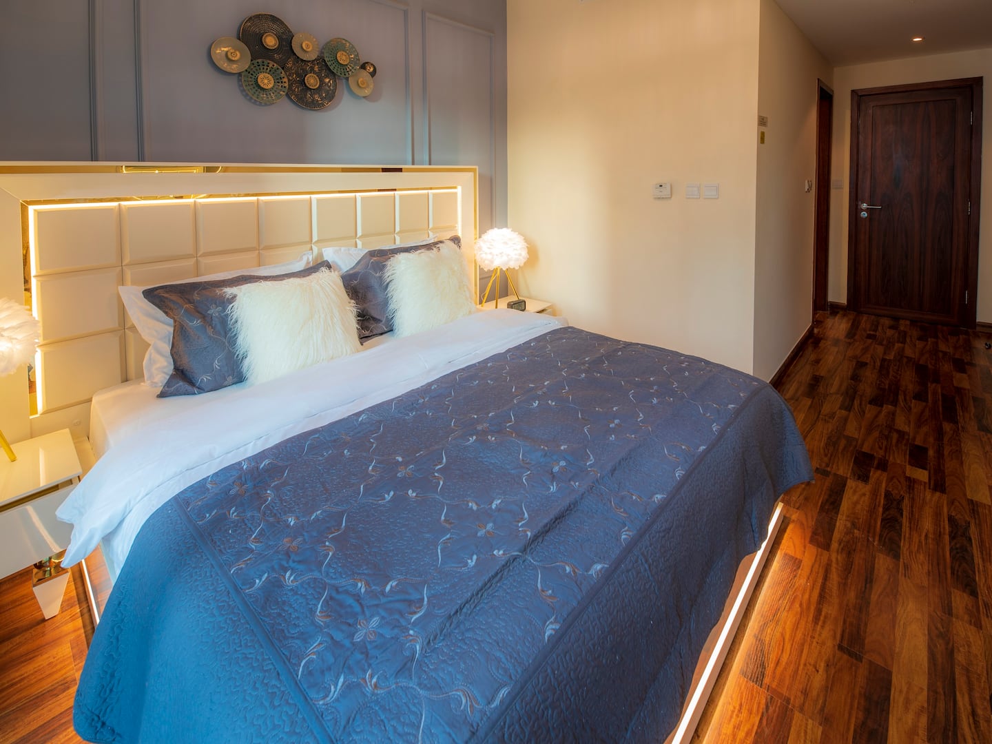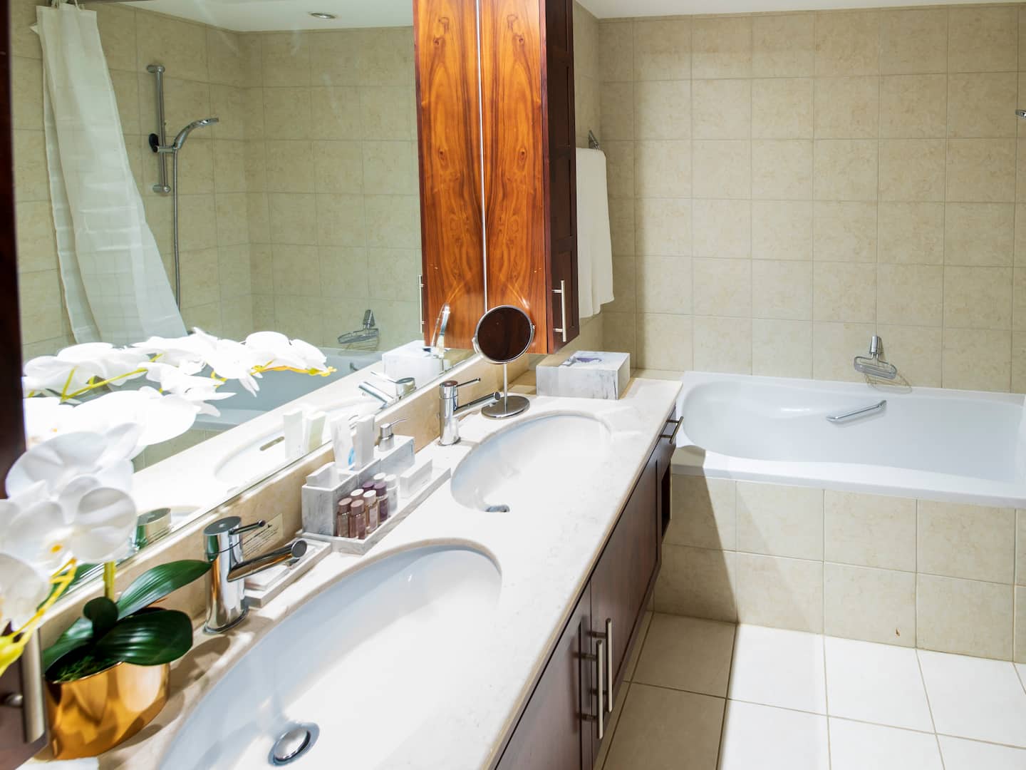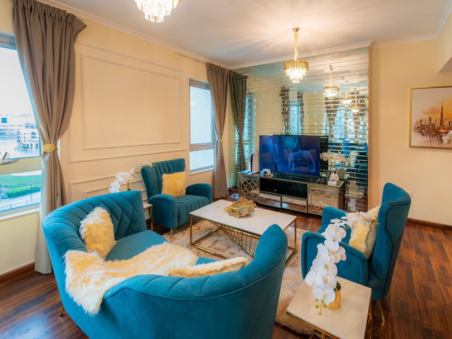 This newly furnished two bedroom apartment is located in one of the most premium buildings in Downtown Dubai! This newly furnished apartment exemplifies the glamour and luxurious lifestyle of Dubai. It is literally located right across the road from the Burj Khalifa which is the tallest tower in the world! Also, the tower is connected to the Bruj Park! Wait till you see the rest of the facilities which include a fitness center, kids area, squash courts etc. This welcoming space draws you in with its refreshing colour palette, allowing you to energize and rejuvenate yourself. The flawless space consists of two majestic bedrooms with built-in wardrobes for your convenience, a kids bedroom, a living room, a terrace accompanied by the breathtaking views on the worlds tallest tower - The Burj Khalifa, the Dubai Mall, Dubai Fountain along with Downtown Dubai, and a state-of-the-art kitchen which is fully equipped with high-end appliances and a handy service window to the dining area, making it easy to serve up your favorite dishes. Our apartments are exclusively designed for your optimal privacy, we offer video intercom access, pool, fully-equipped gymnasium and for your safety and protection 24 hours’ security available in the building. Our apartments are rented solely for our guests thus, you have a key card system which allows you to utilize the private building parking, following an elevator straight to your apartment. The apartment itself is secluded and offers you prime privacy for your relaxation. As soon as you arrive you will be welcomed by our guest experience manager, who will be at your service 24 hours a day regarding any matter. One day prior to your departure I will contact you for your check out details. As we truly respect your privacy we will not cause any disturbance to you during your stay, until and unless you have requested it.
