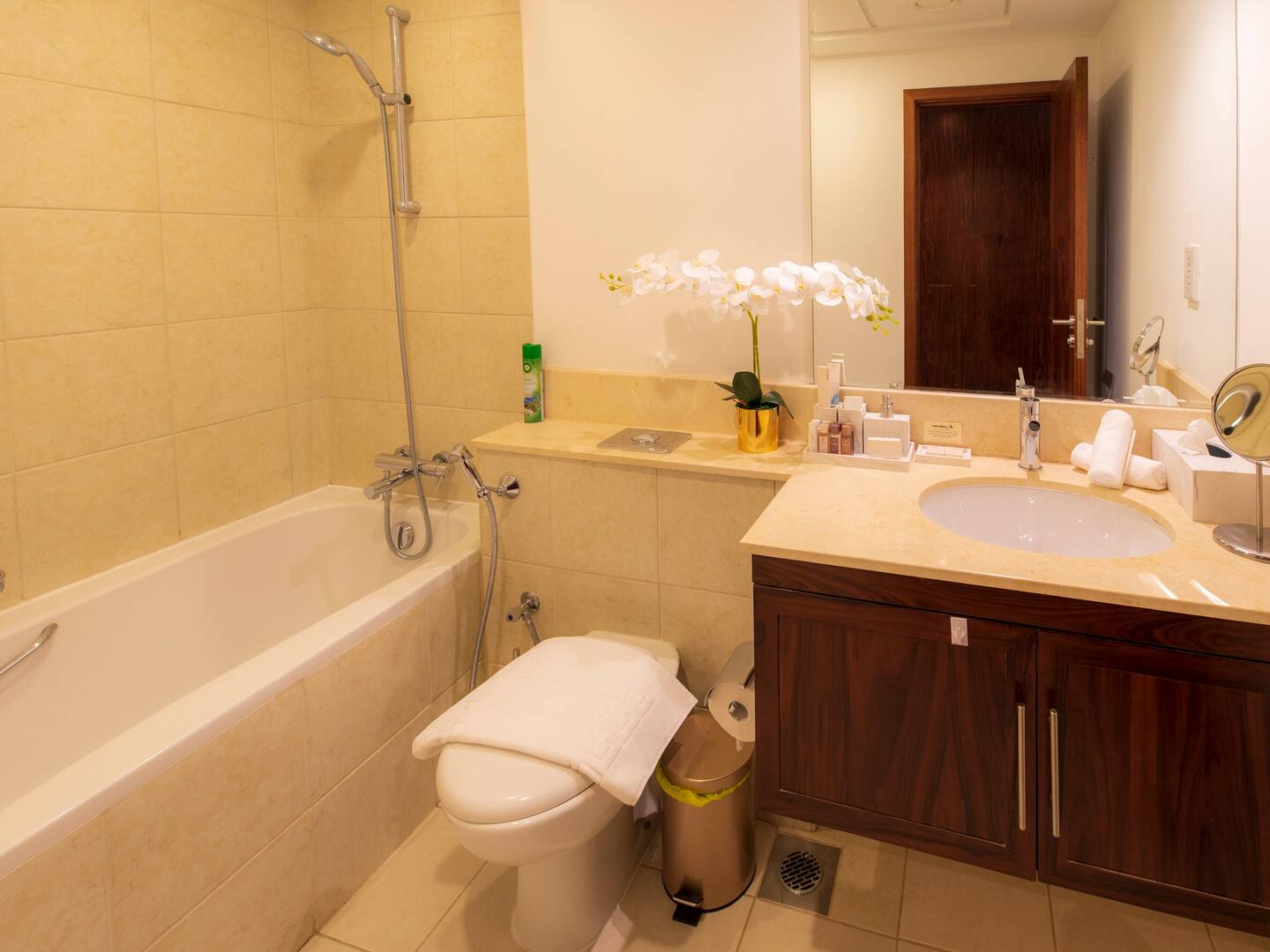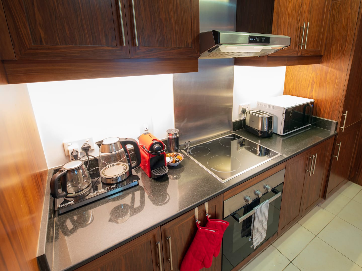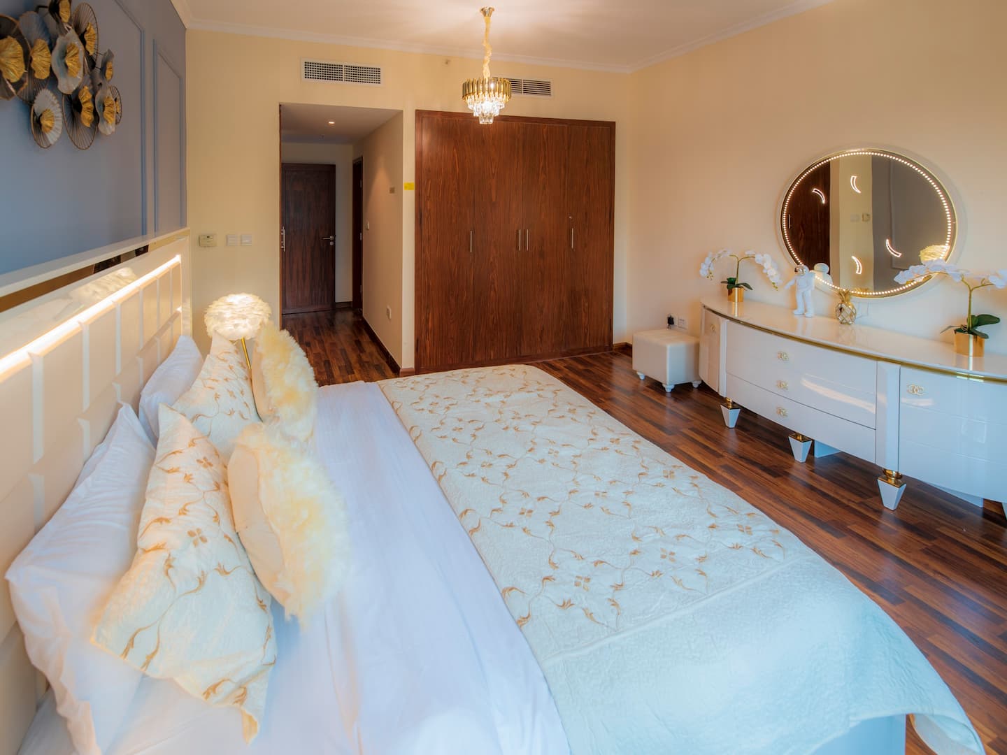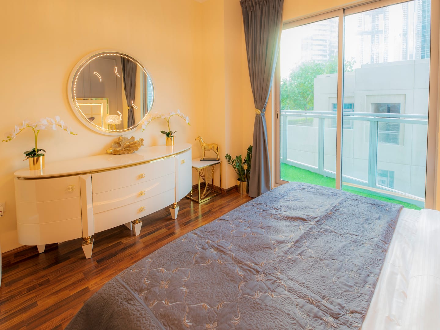 The apartment has a direct link to the Burj Park and 2 Swimming pools and gymnasium.