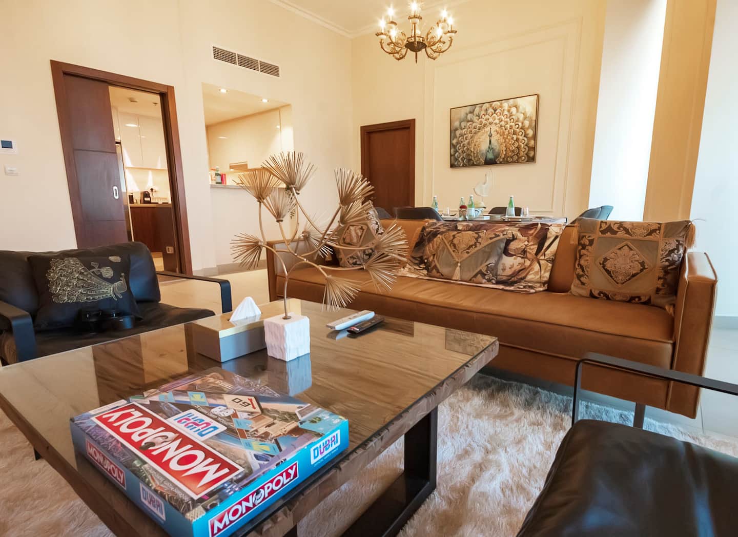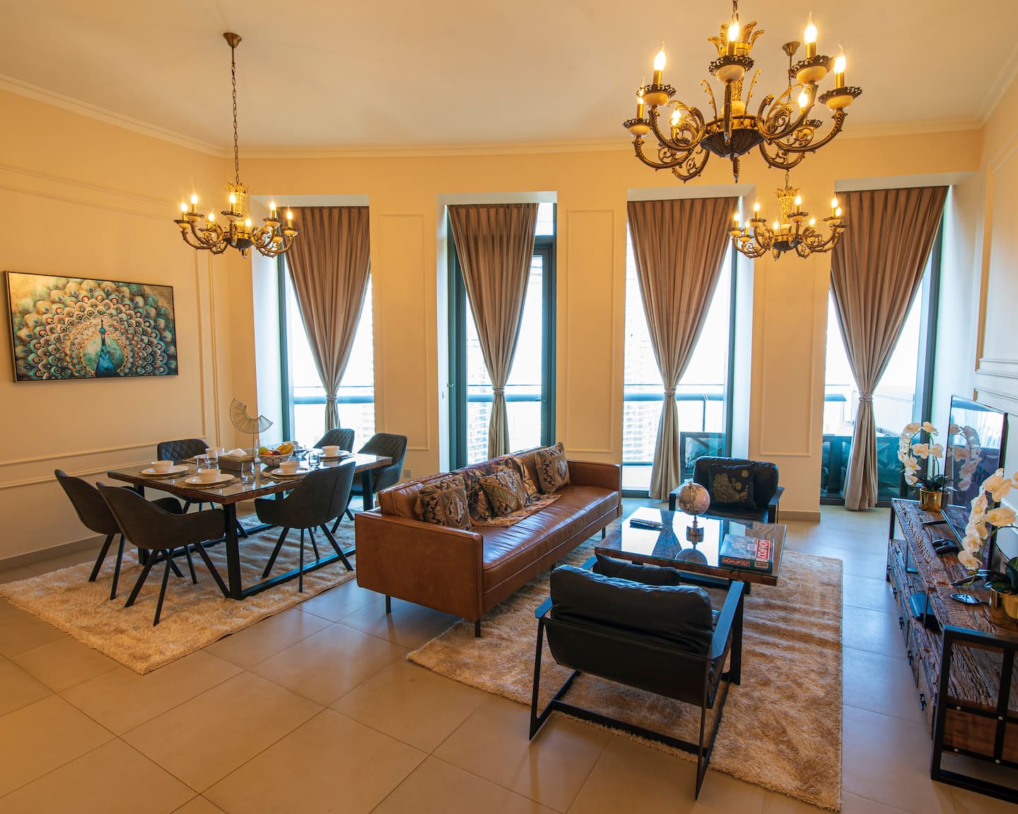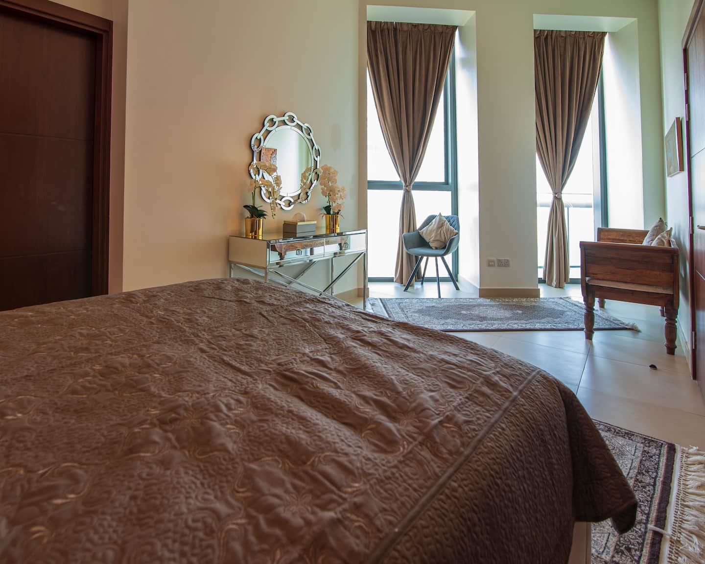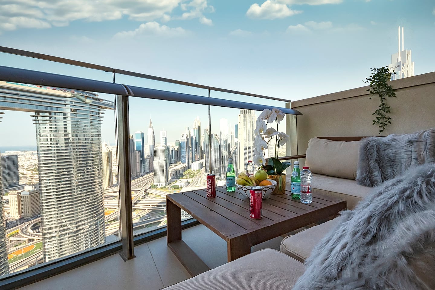 This luxuriously designed apartment has a direct full view from the balcony on the famous Sheikh Zayed Road and the Arabian Sea.