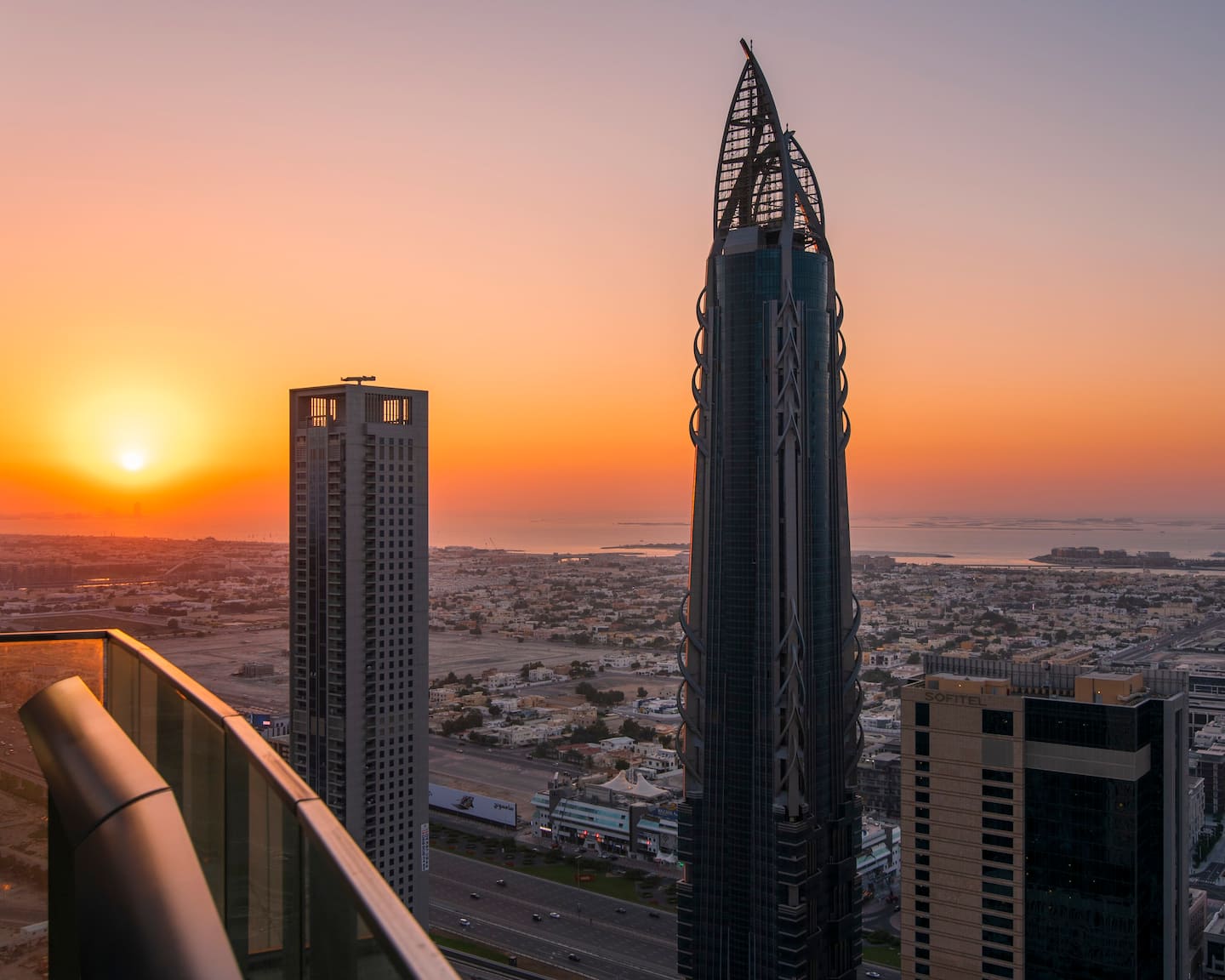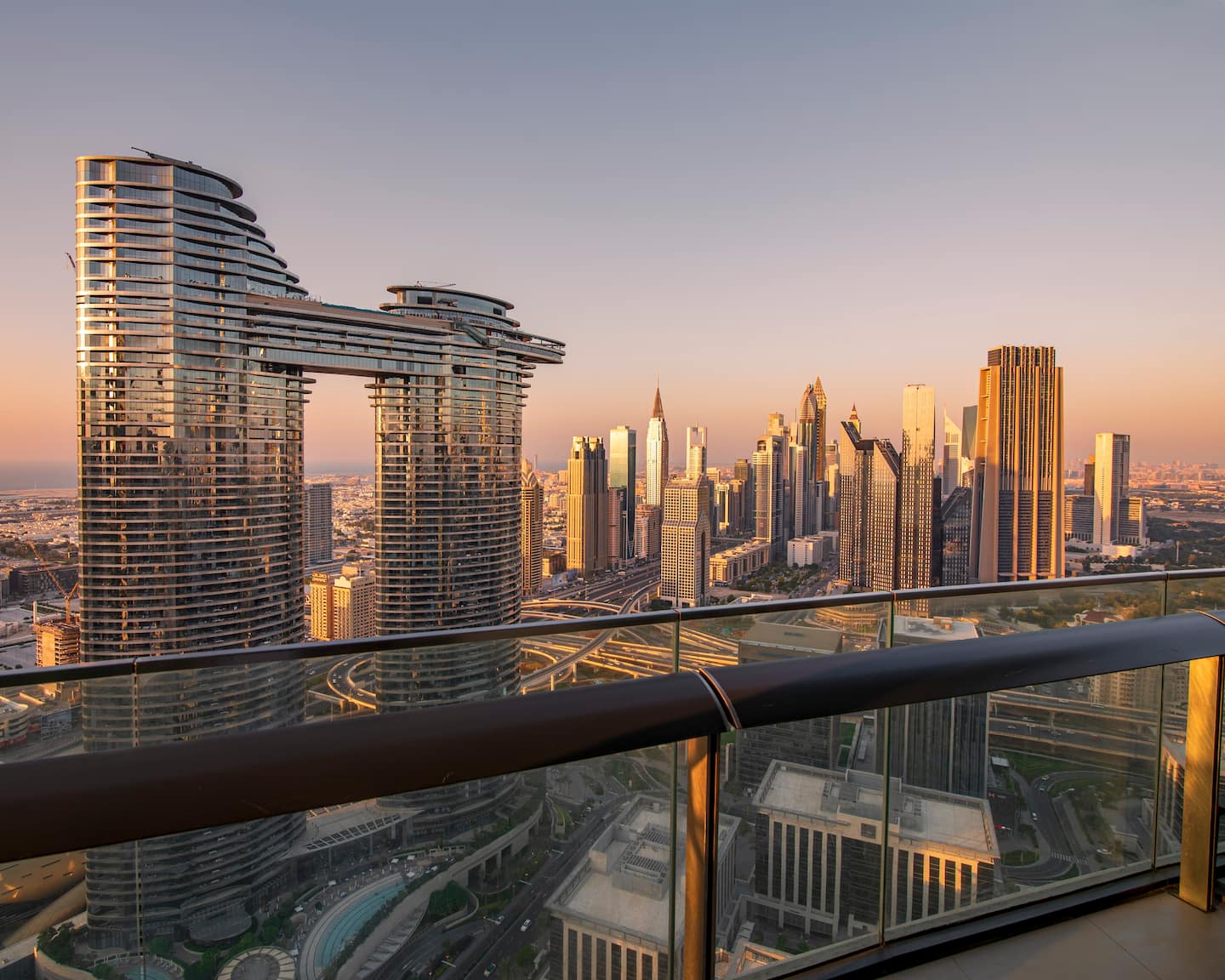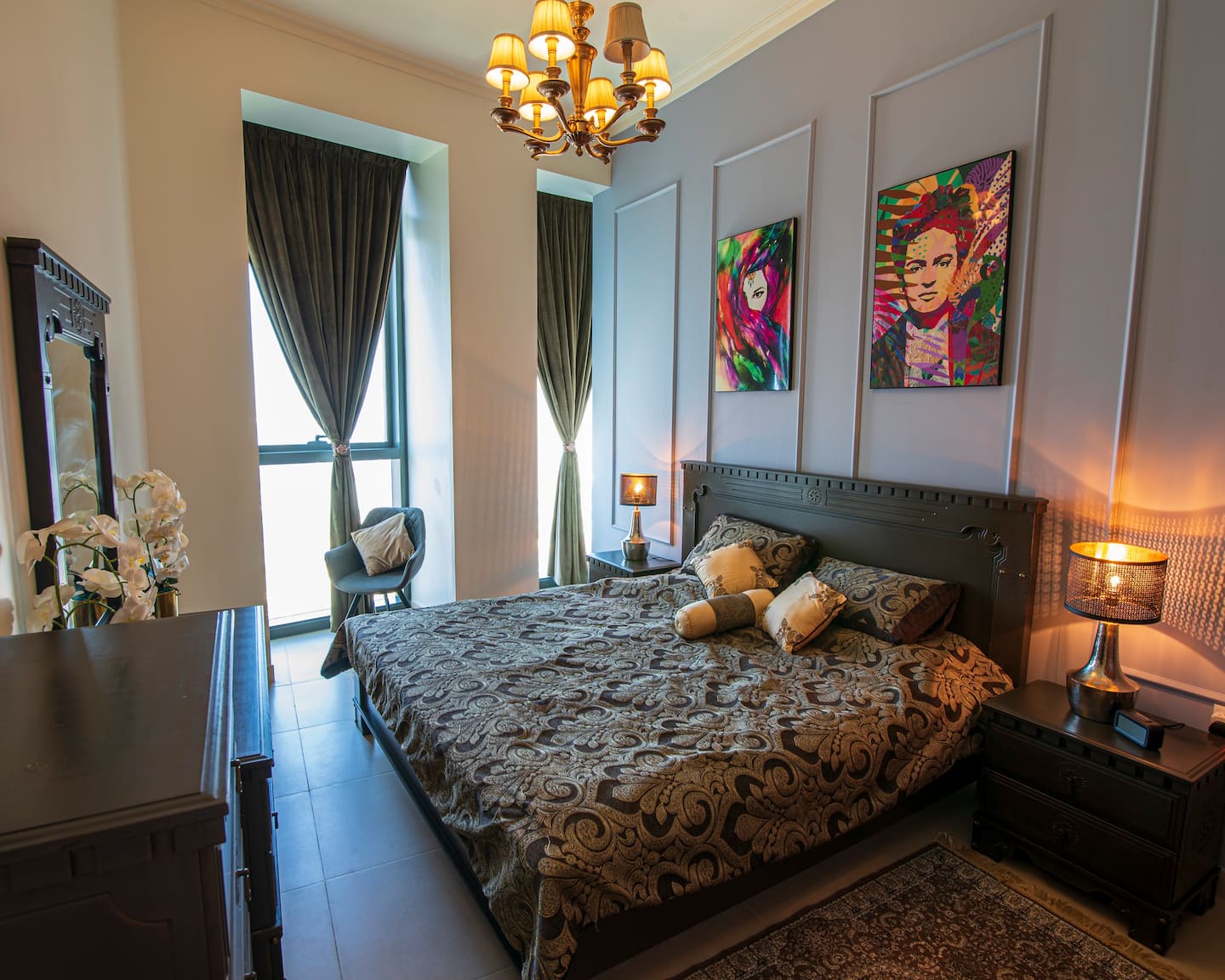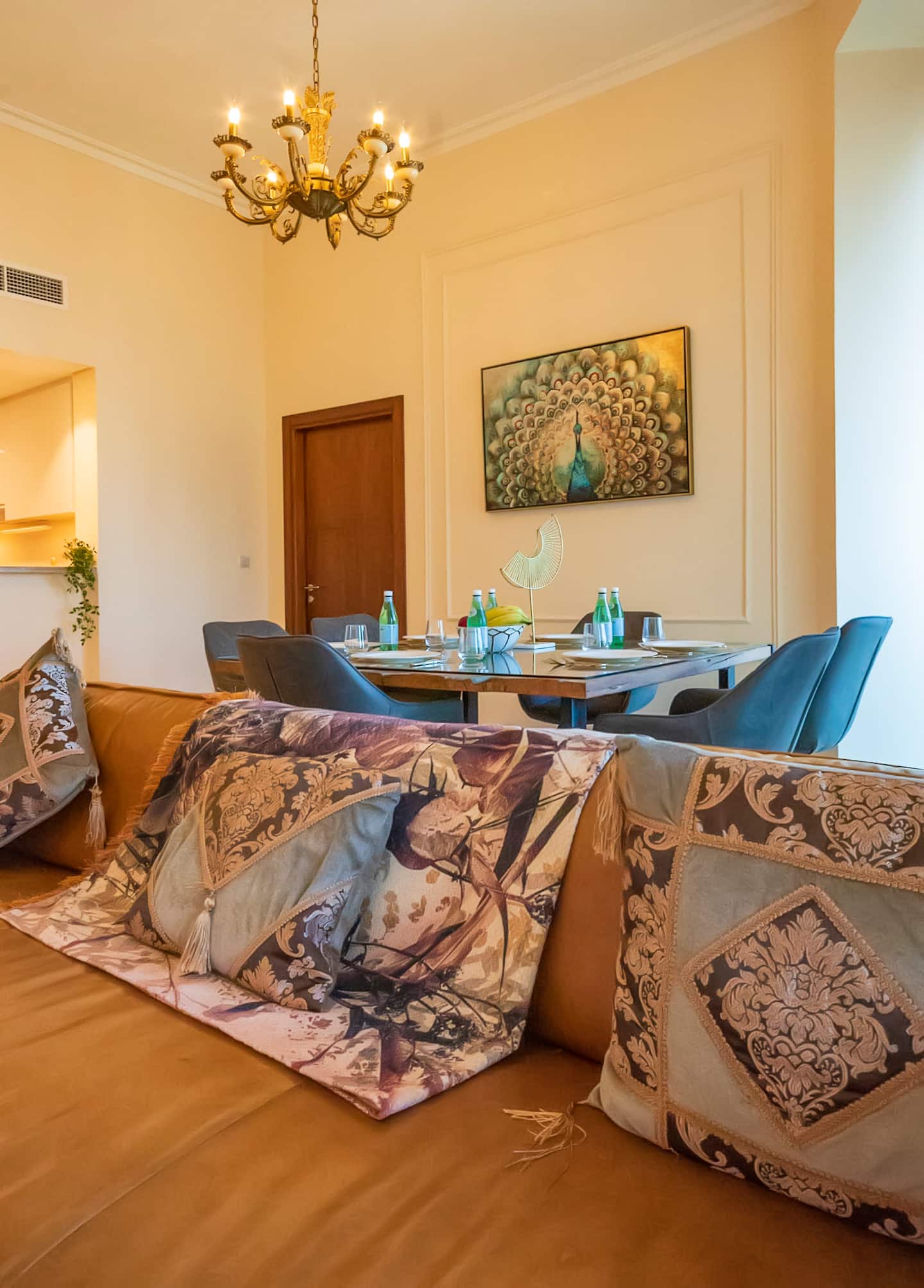This luxuriously designed apartment has a direct full view from the balcony on the famous Sheikh Zayed Road and the Arabian Sea.